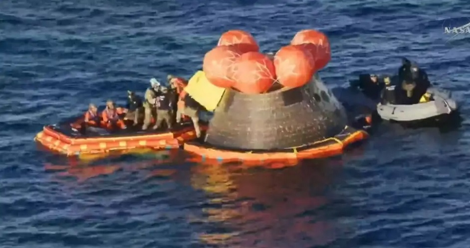 09:05 Hs El viaje que marcó el récord de distancia en la exploración espacial llegó a su fin este viernes tal lo planeado. Después de diez días en órbita y un histórico paso por la cara oculta de la Luna, la cápsula Orión cumplió con un amerizaje perfecto en el Pacífico. Eufórica felicitación de Trump.