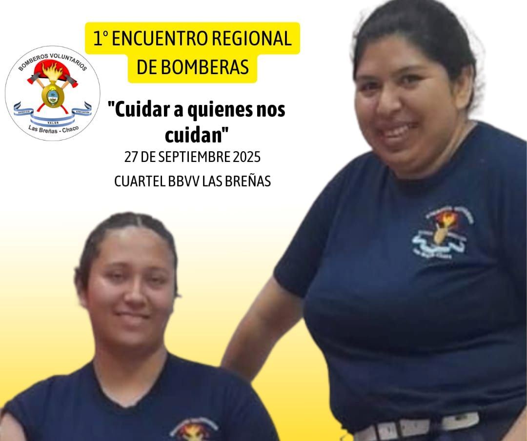 18/09/2025 | 14:53 La Asociación Civil Bomberos Voluntarios Las Breñas se encuentra organizando el 1° Encuentro Regional de Mujeres Bomberas que se llevará a cabo el día 27 de septiembre de 2025, en el Cuartel de Bomberos Voluntarios de Las Breñas, de 08:00 a 16:00 hs.